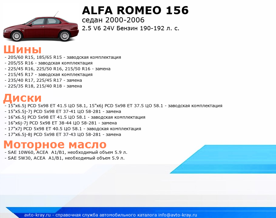 156 2.5 V6 24V Бензин 190-192 л. с.