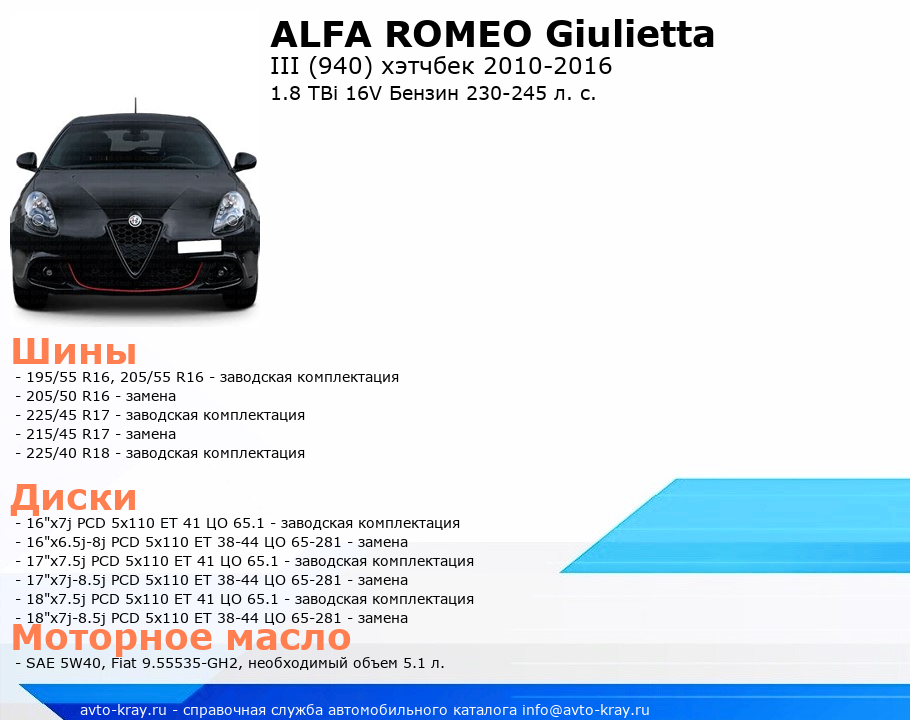 Giulietta 1.8 TBi 16V Бензин 230-245 л. с.