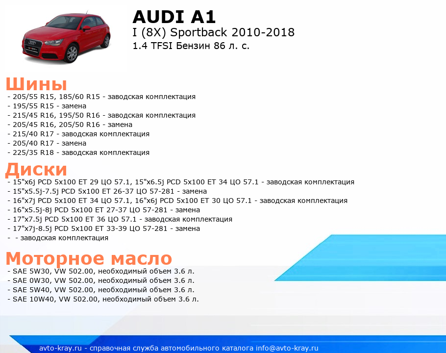 A1 1.4 TFSI Бензин 86 л. с.