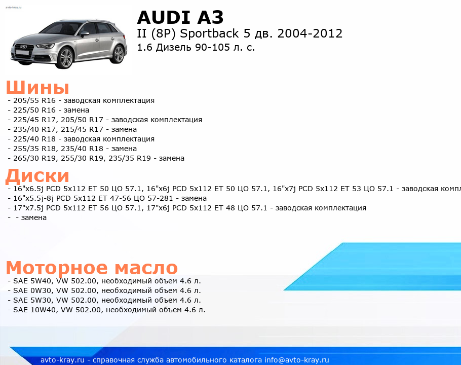A3 1.6 Дизель 90-105 л. с.