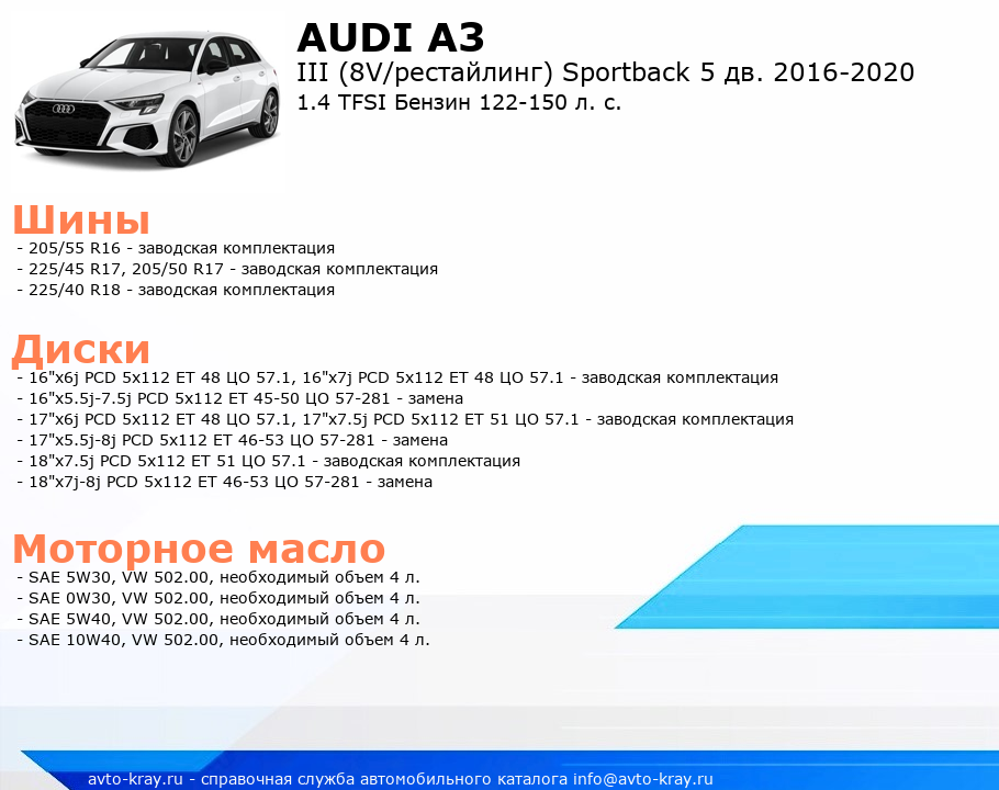 A3 1.4 TFSI Бензин 122-150 л. с.