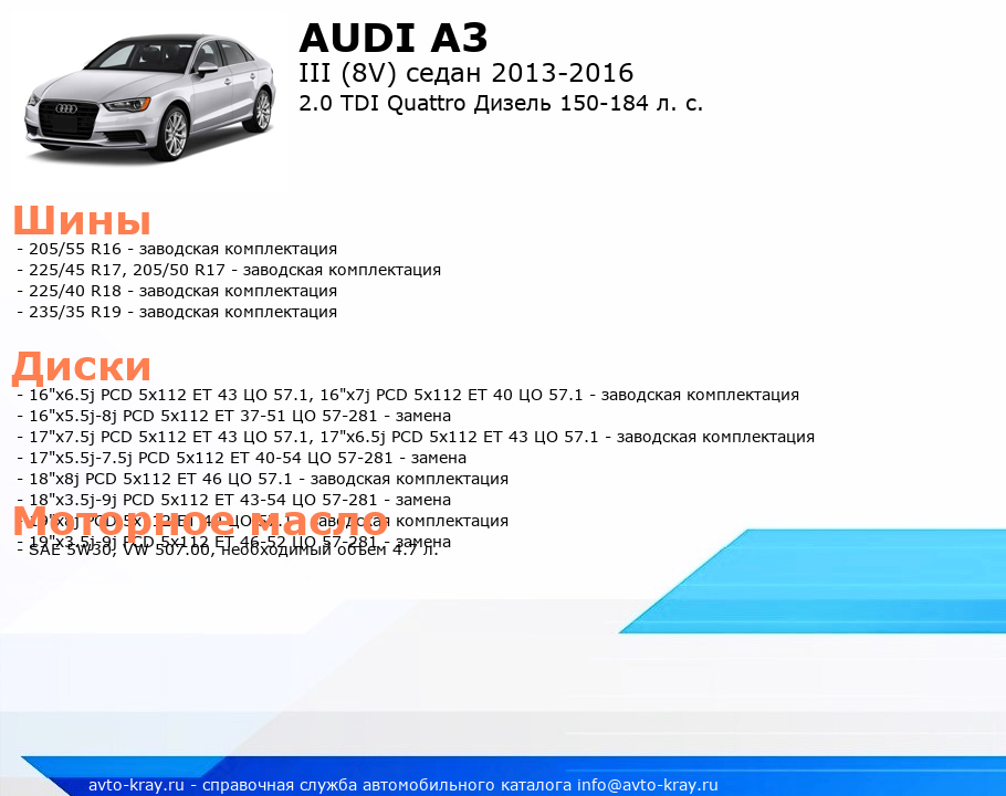 A3 2.0 TDI Quattro Дизель 150-184 л. с.