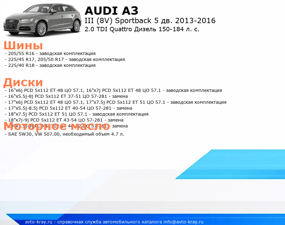A3 2.0 TDI Quattro Дизель 150-184 л. с.