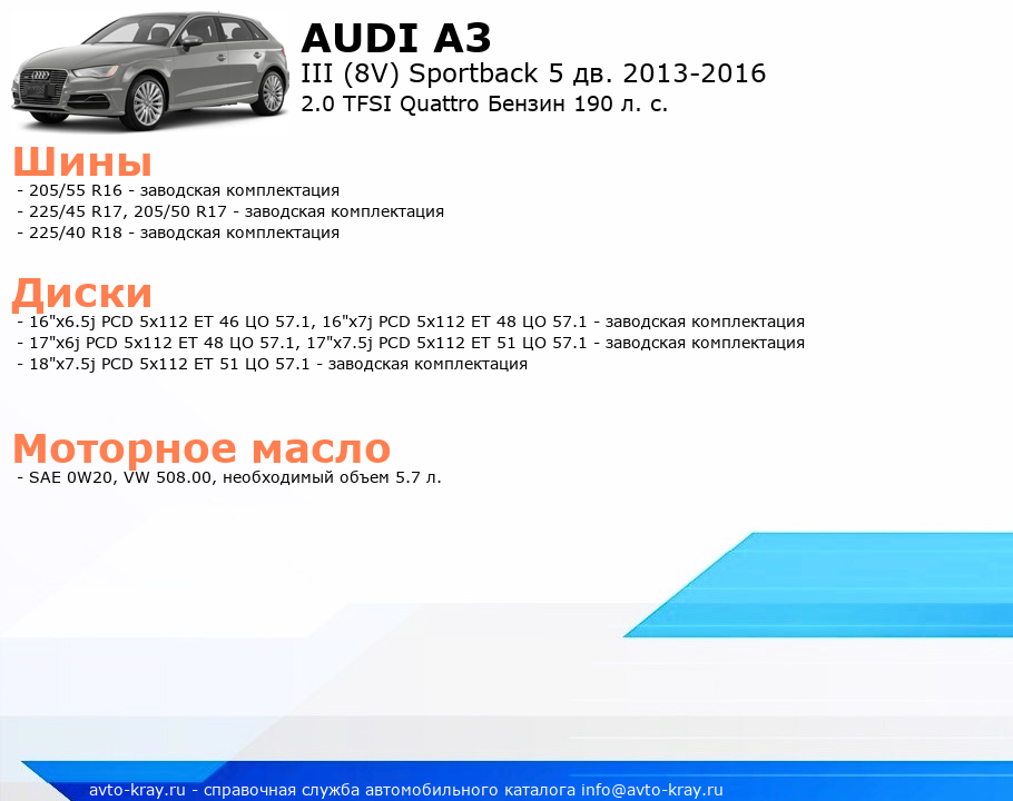 A3 2.0 TFSI Quattro Бензин 190 л. с.