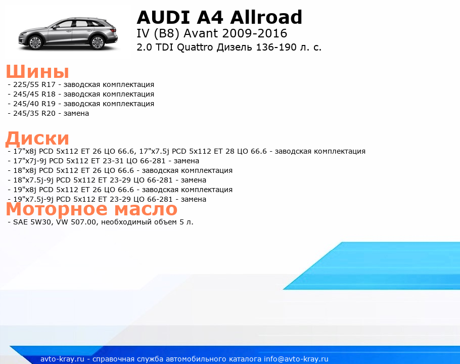 A4 Allroad 2.0 TDI Quattro Дизель 136-190 л. с.