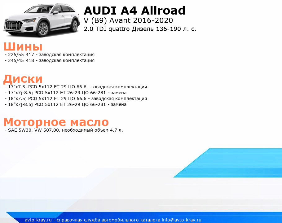 A4 Allroad 2.0 TDI quattro Дизель 136-190 л. с.