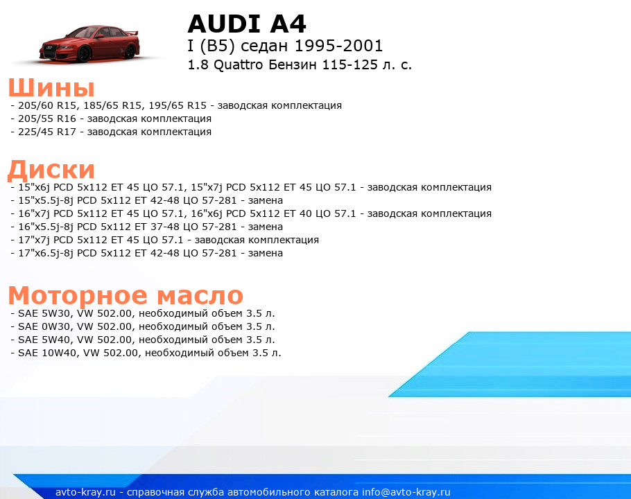 A4 1.8 Quattro Бензин 115-125 л. с.