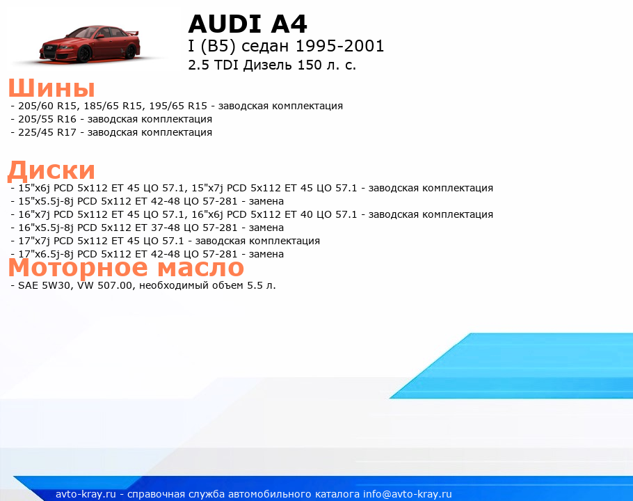 A4 2.5 TDI Дизель 150 л. с.