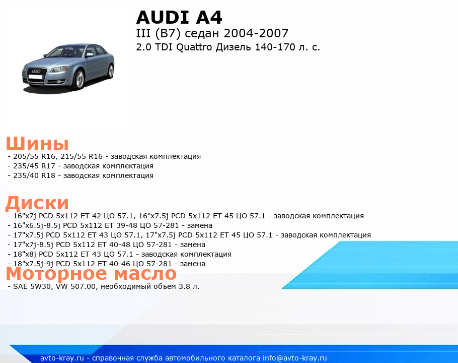A4 2.0 TDI Quattro Дизель 140-170 л. с.