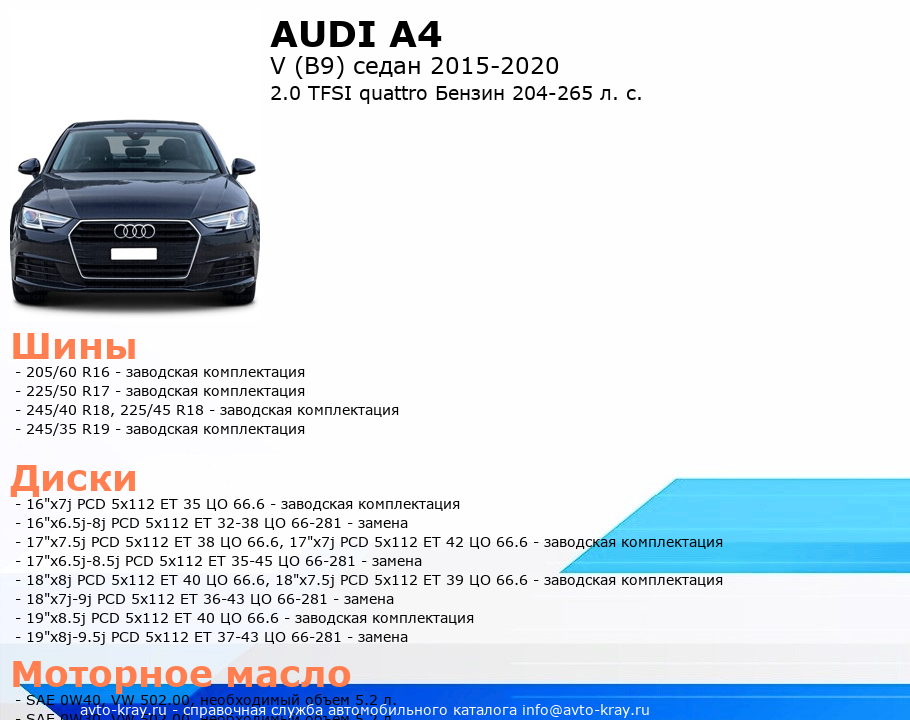 A4 2.0 TFSI quattro Бензин 204-265 л. с.