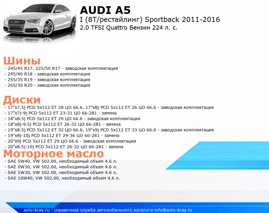 A5 2.0 TFSI Quattro Бензин 224 л. с.