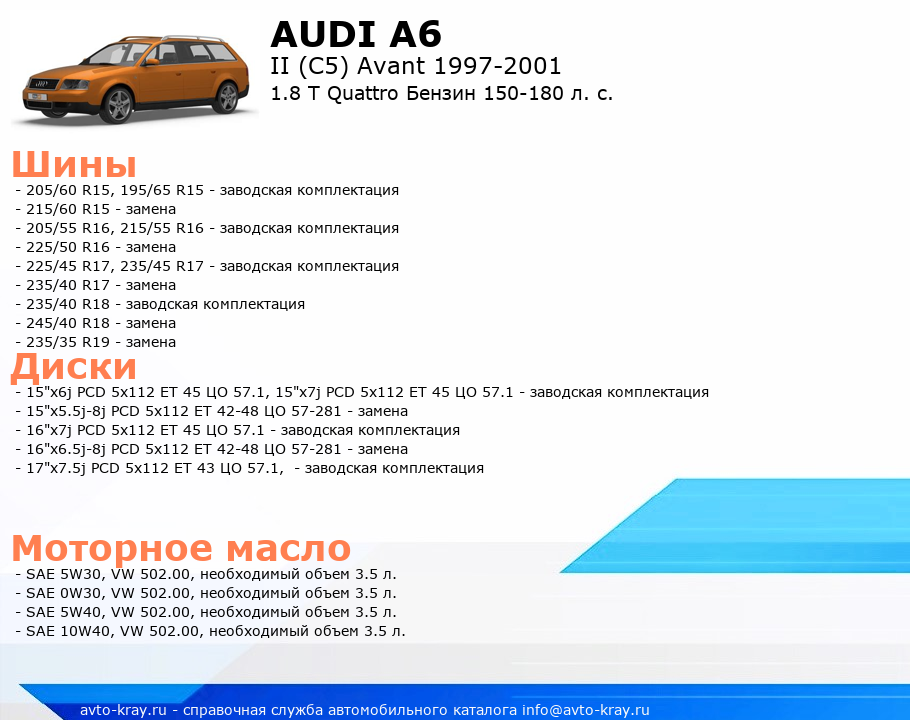 A6 1.8 T Quattro Бензин 150-180 л. с.