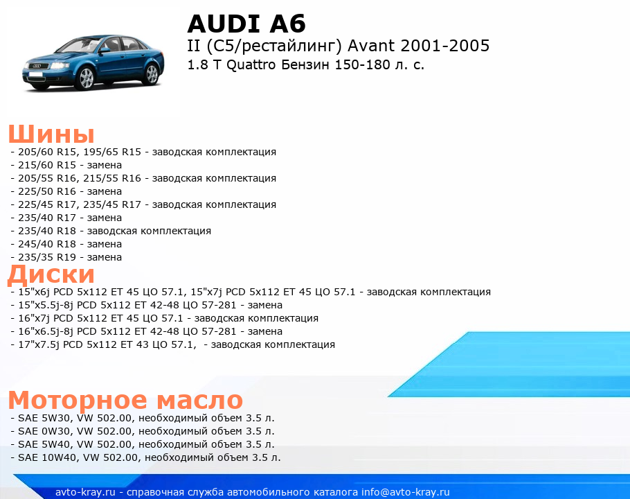 A6 1.8 T Quattro Бензин 150-180 л. с.