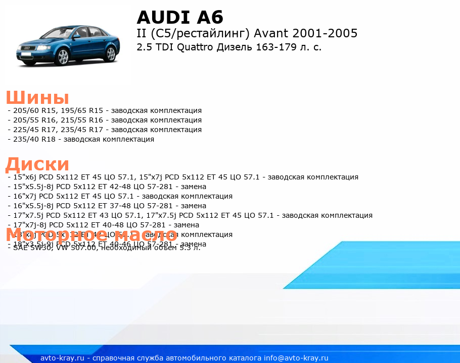 A6 2.5 TDI Quattro Дизель 163-179 л. с.