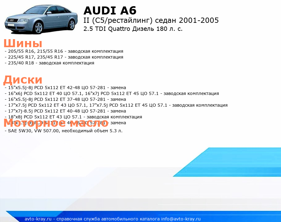 A6 2.5 TDI Quattro Дизель 180 л. с.