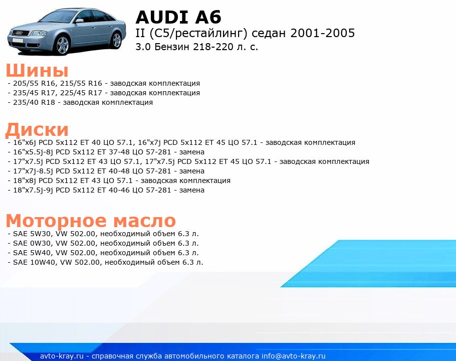 A6 3.0 Бензин 218-220 л. с.