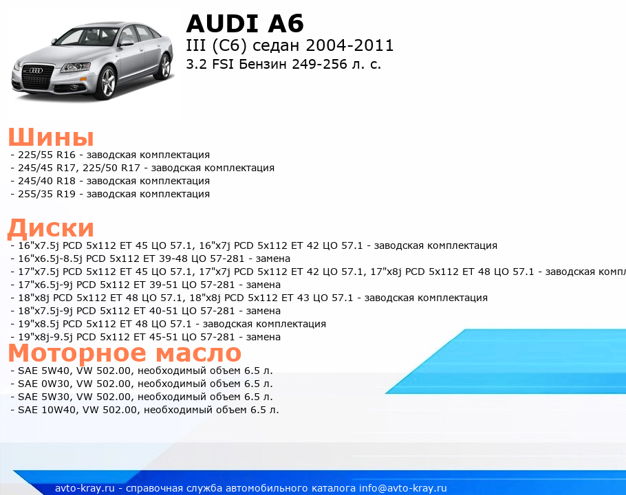 A6 3.2 FSI Бензин 249-256 л. с.