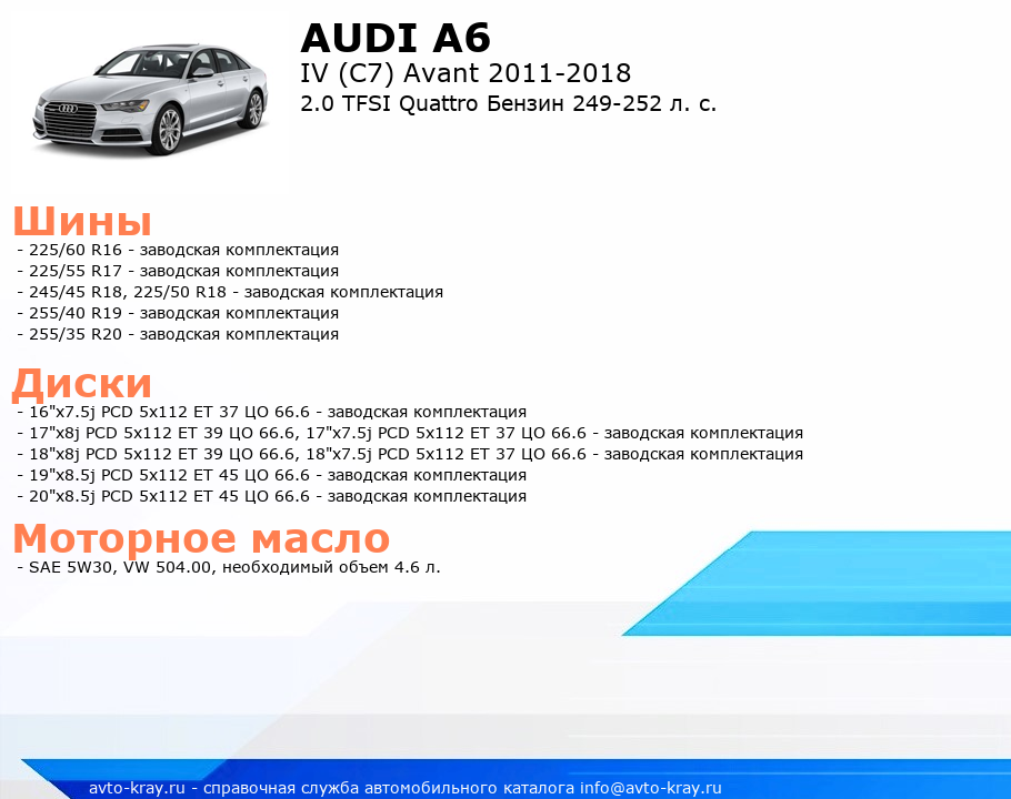 A6 2.0 TFSI Quattro Бензин 249-252 л. с.