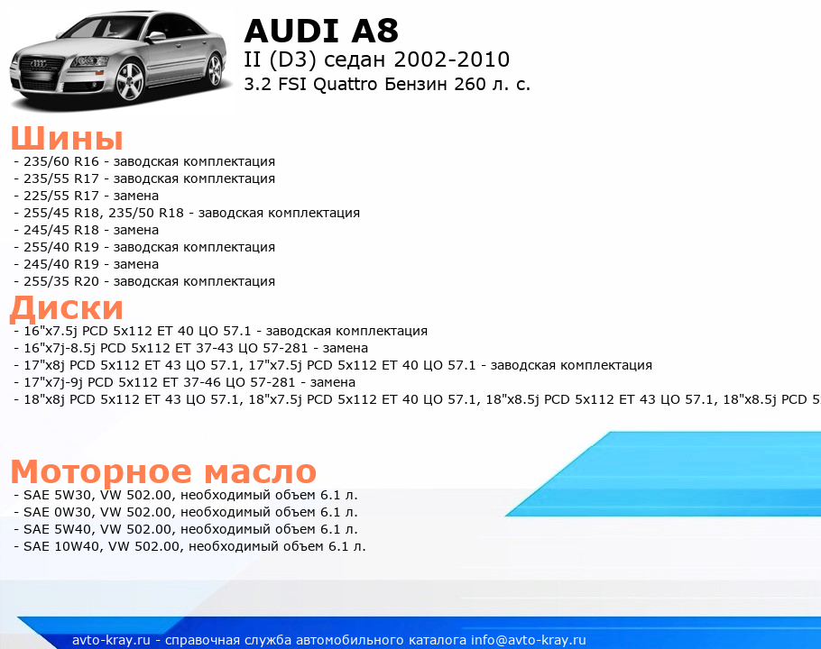 A8 3.2 FSI Quattro Бензин 260 л. с.