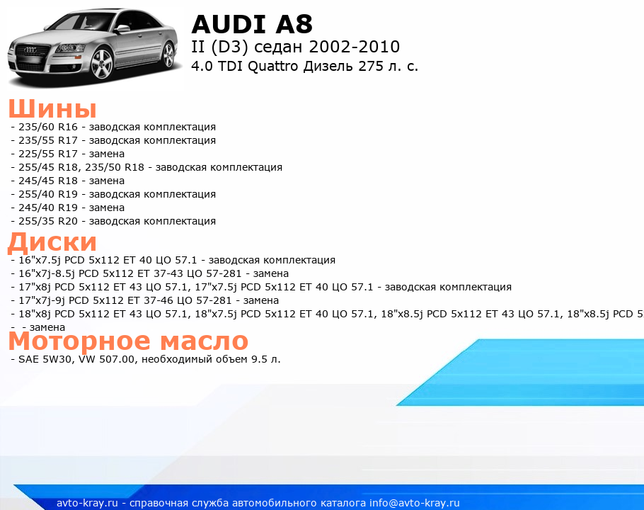 A8 4.0 TDI Quattro Дизель 275 л. с.