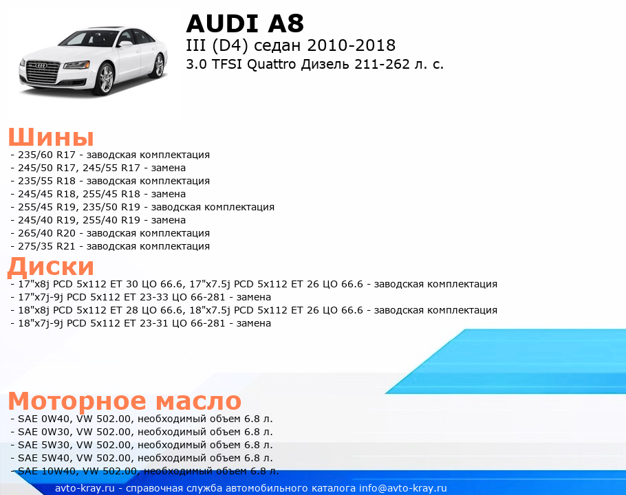 A8 3.0 TFSI Quattro Дизель 211-262 л. с.