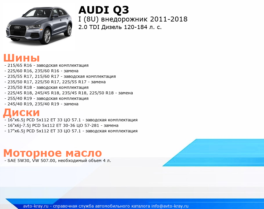 Q3 2.0 TDI Дизель 120-184 л. с.