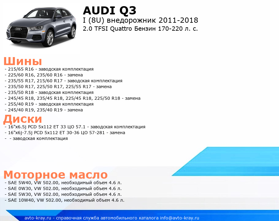 Q3 2.0 TFSI Quattro Бензин 170-220 л. с.