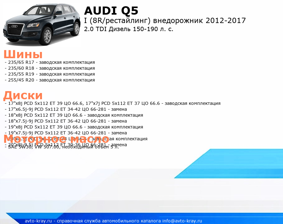 Q5 2.0 TDI Дизель 150-190 л. с.