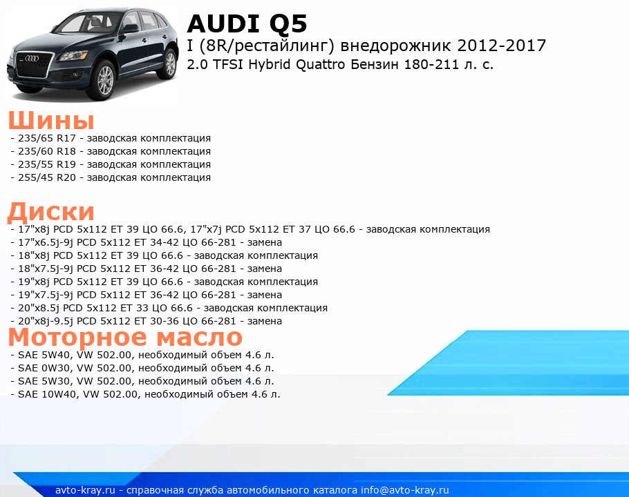 Q5 2.0 TFSI Hybrid Quattro Бензин 180-211 л. с.