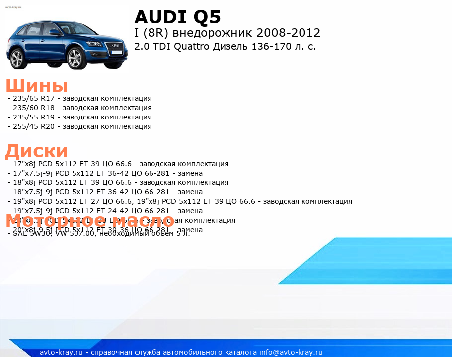 Q5 2.0 TDI Quattro Дизель 136-170 л. с.