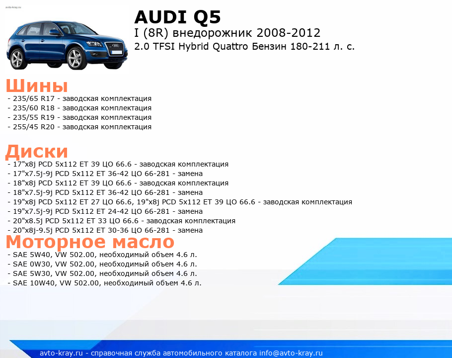 Q5 2.0 TFSI Hybrid Quattro Бензин 180-211 л. с.