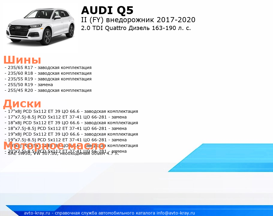Q5 2.0 TDI Quattro Дизель 163-190 л. с.