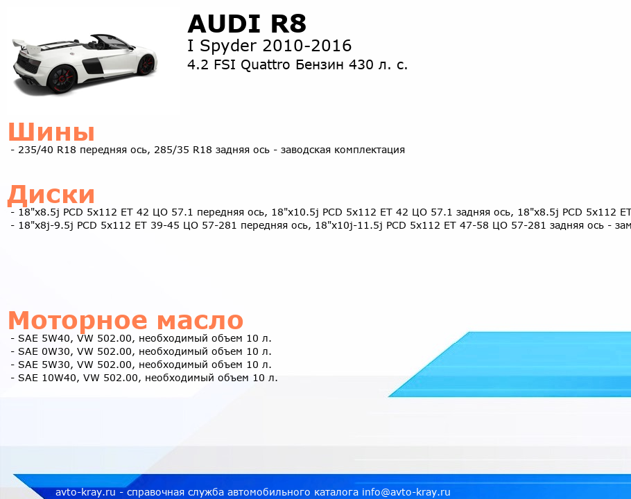R8 4.2 FSI Quattro Бензин 430 л. с.