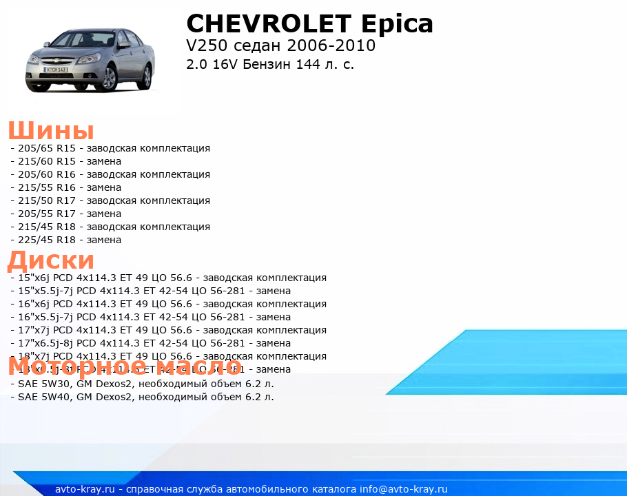 Epica 2.0 16V Бензин 144 л. с.