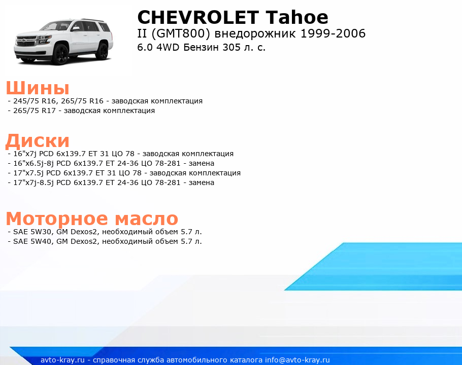 Tahoe 6.0 4WD Бензин 305 л. с.