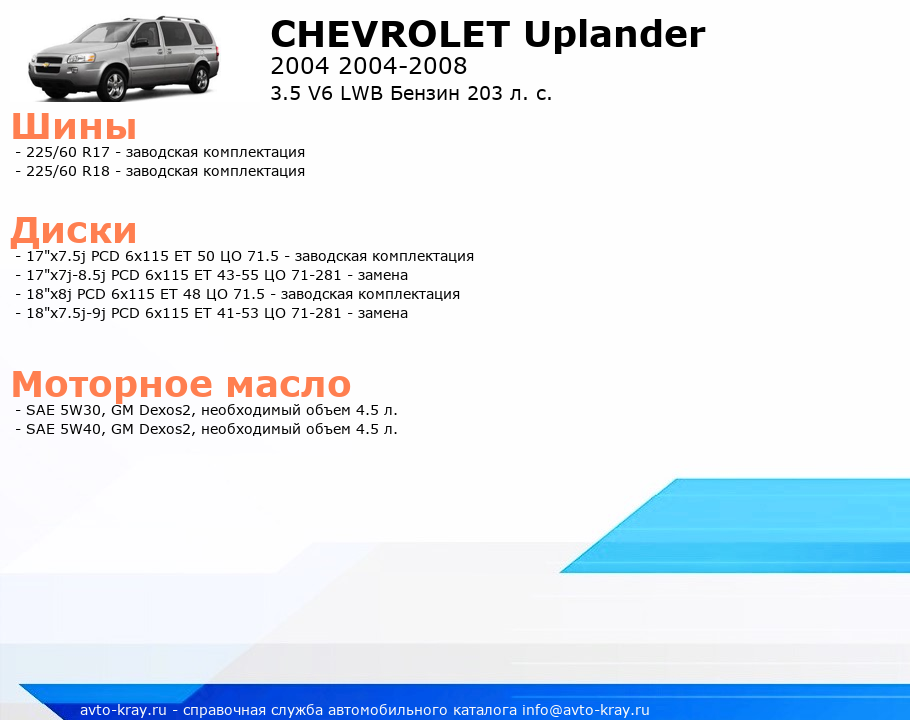 Uplander 3.5 V6 LWB Бензин 203 л. с.
