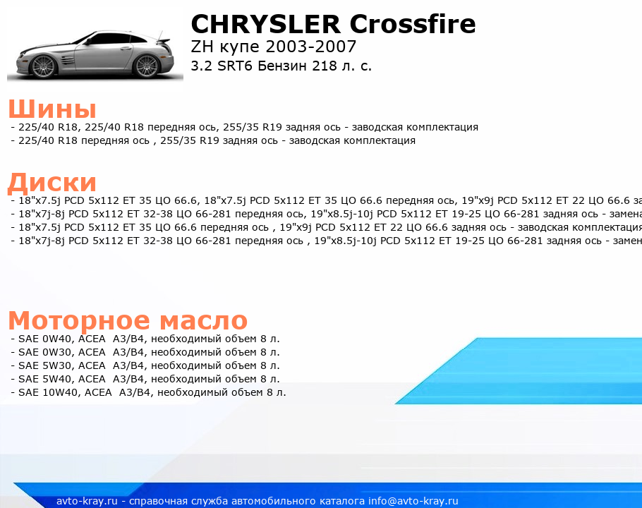 Crossfire 3.2 SRT6 Бензин 218 л. с.