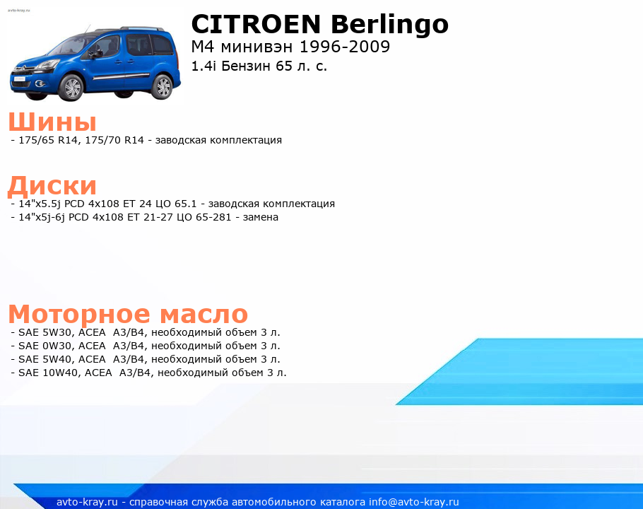 Berlingo 1.4i Бензин 65 л. с.
