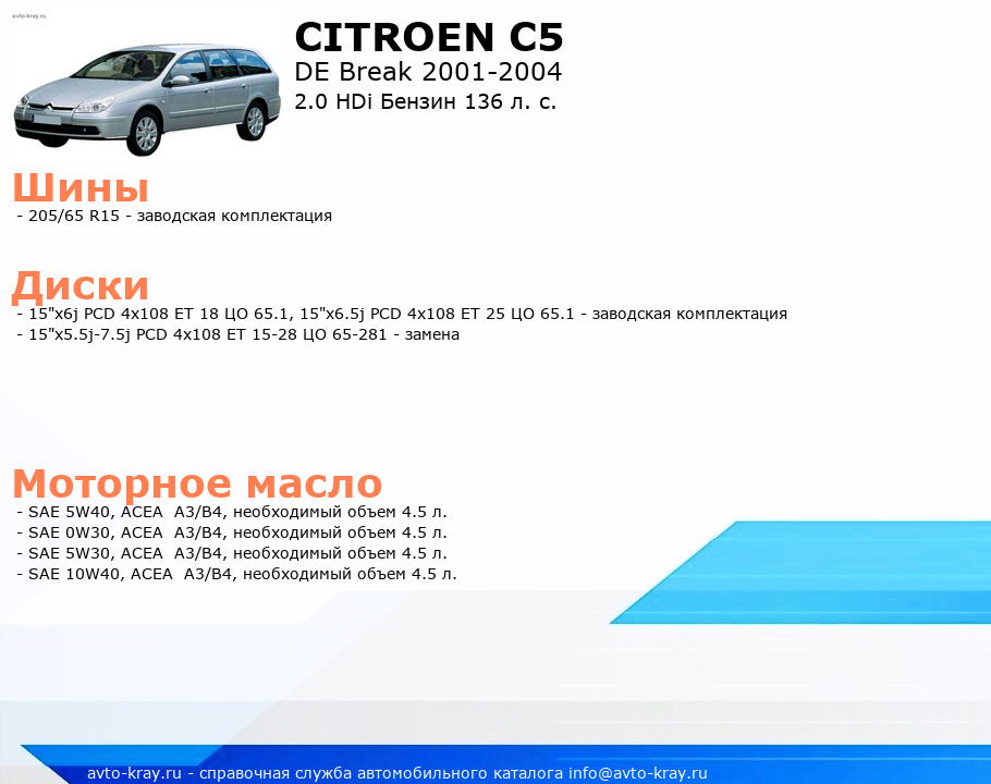 C5 2.0 HDi Бензин 136 л. с.