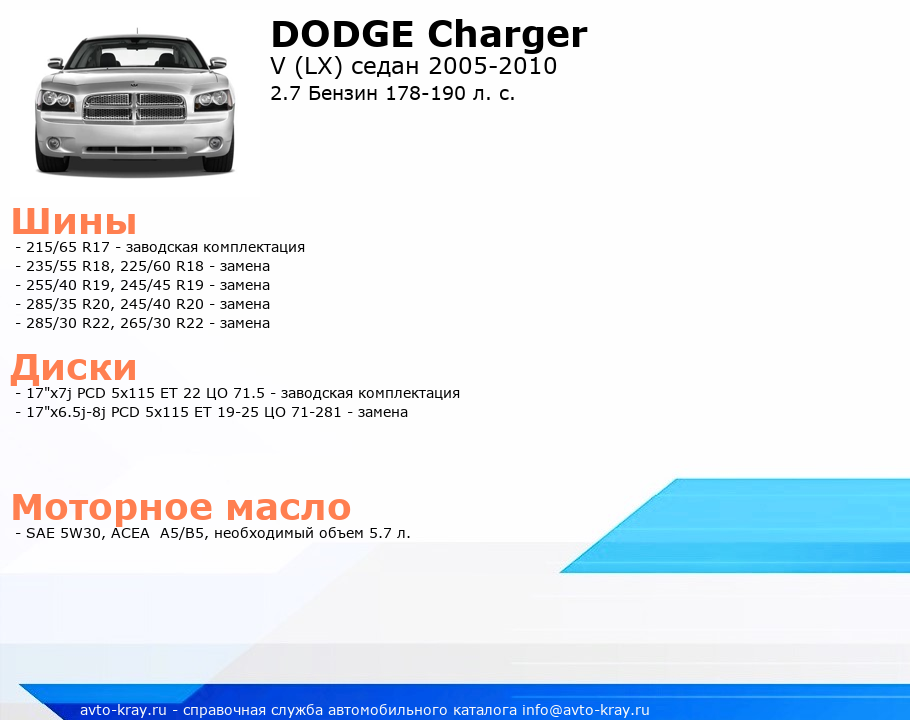 Charger 2.7 Бензин 178-190 л. с.