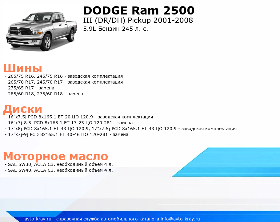 Ram 2500 5.9L Бензин 245 л. с.