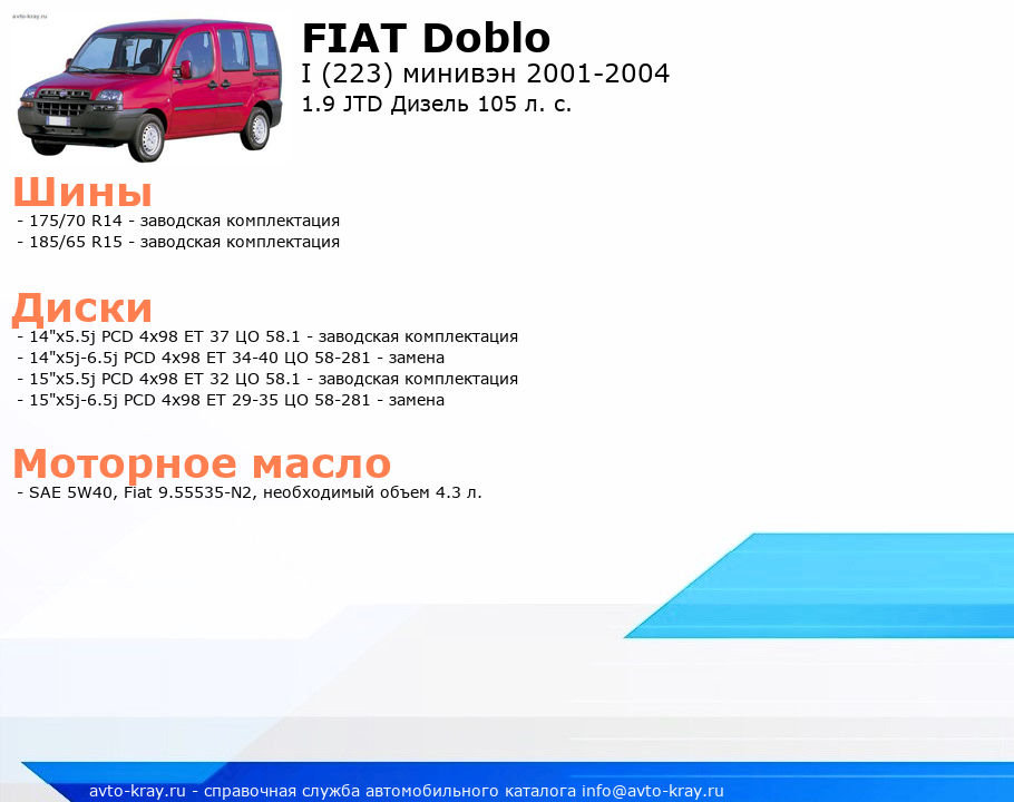Doblo 1.9 JTD Дизель 105 л. с.