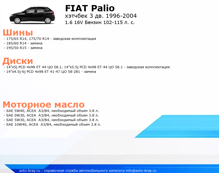 Palio 1.6 16V Бензин 102-115 л. с.