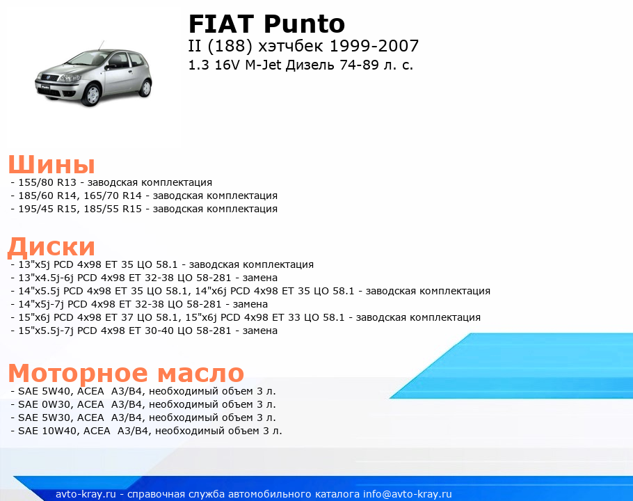 Punto 1.3 16V M-Jet Дизель 74-89 л. с.