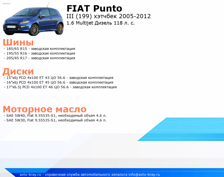 Punto 1.6 Multijet Дизель 118 л. с.