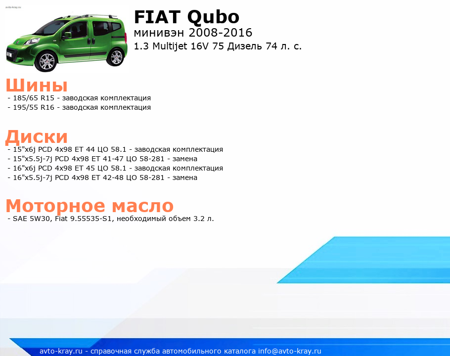 Qubo 1.3 Multijet 16V 75 Дизель 74 л. с.
