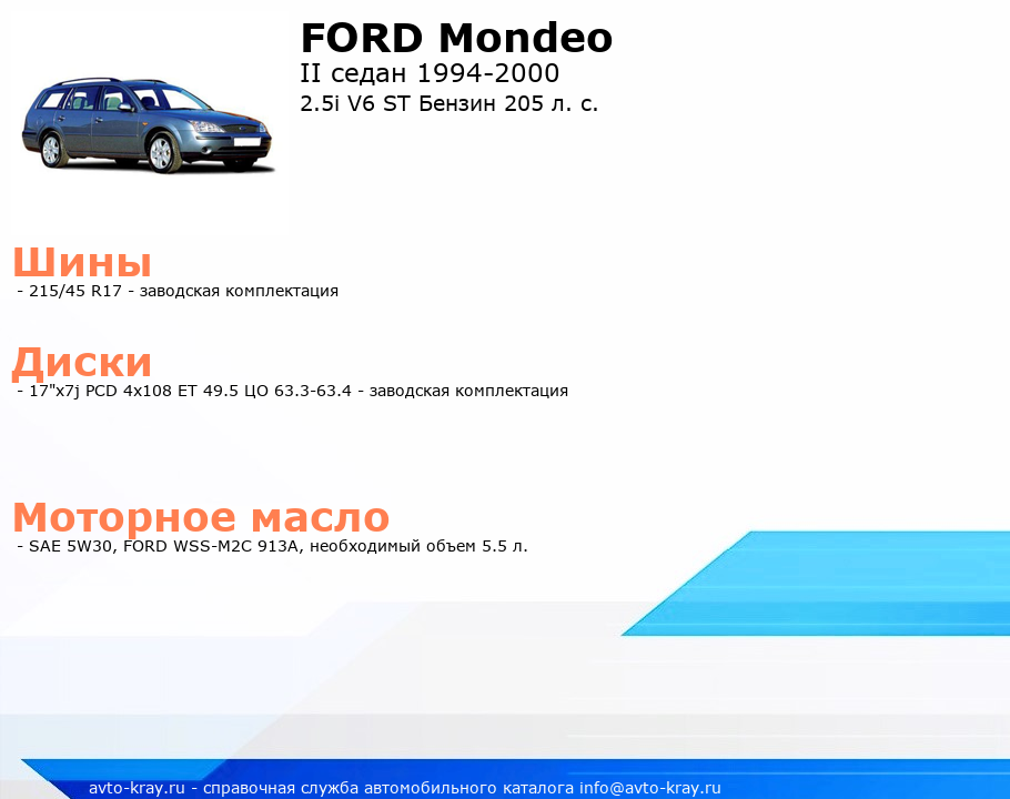 Mondeo 2.5i V6 ST Бензин 205 л. с.