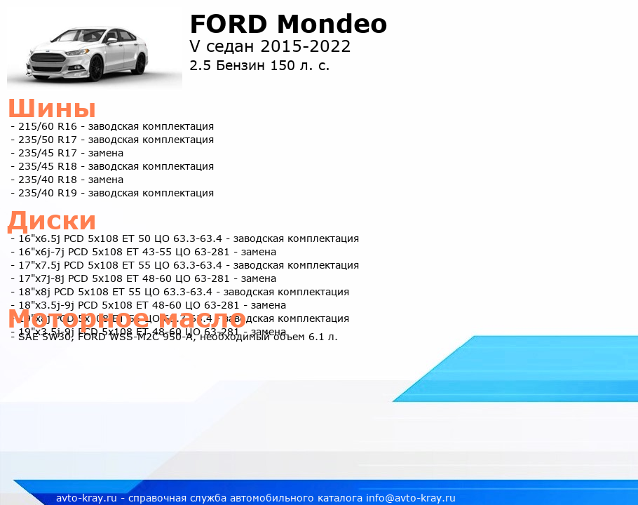 Mondeo 2.5 Бензин 150 л. с.
