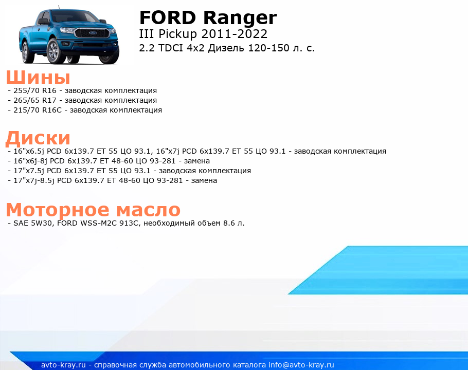 Ranger 2.2 TDCI 4x2 Дизель 120-150 л. с.