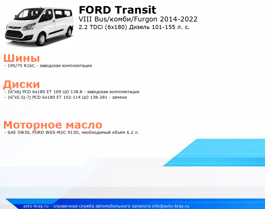 Transit 2.2 TDCi (6x180) Дизель 101-155 л. с.